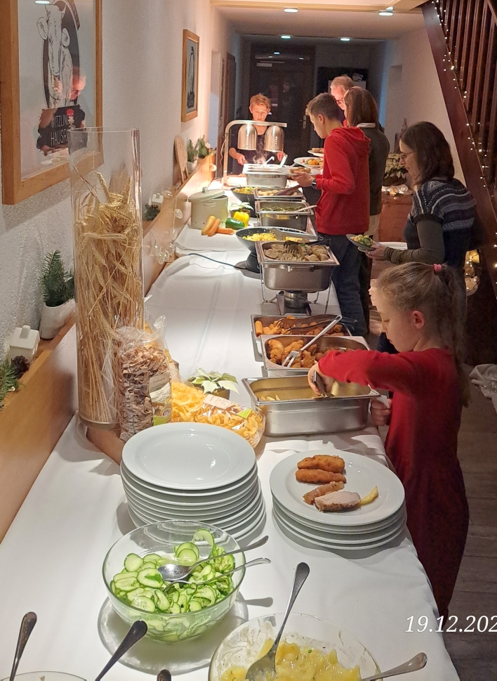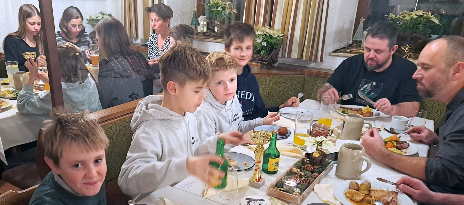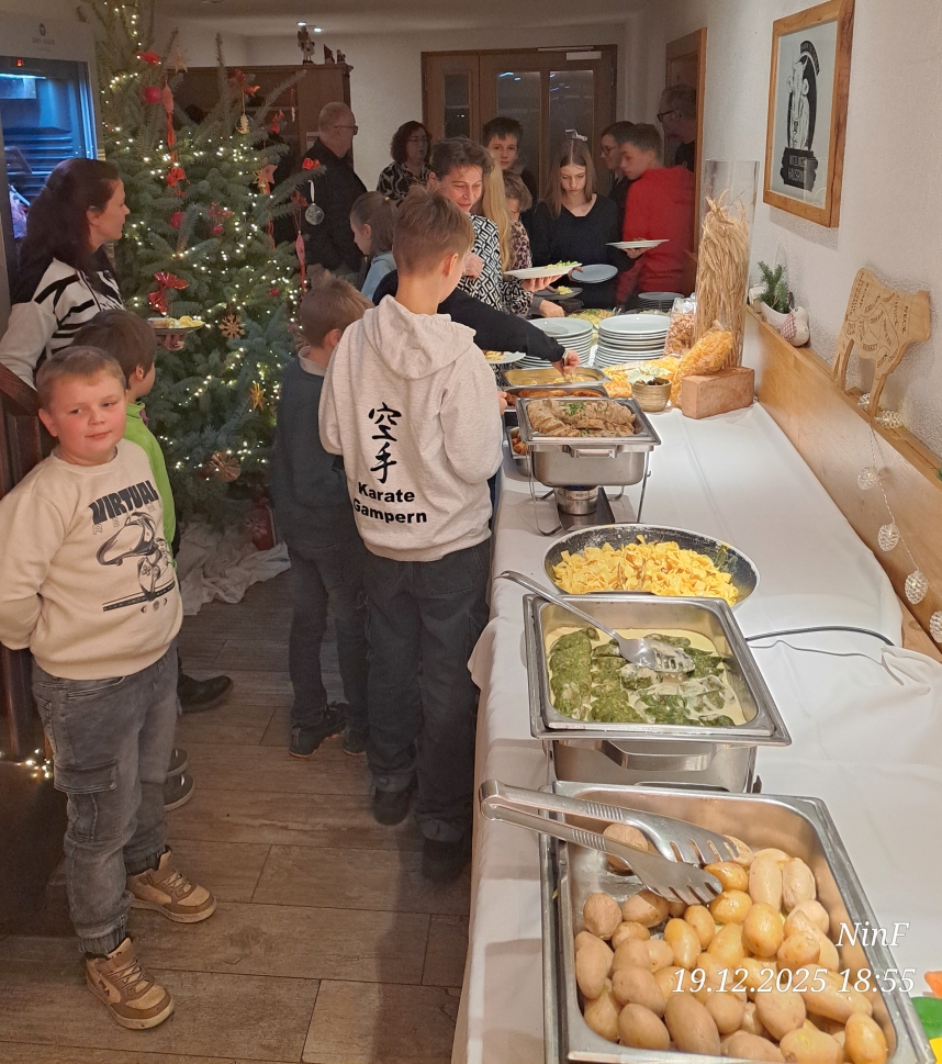 Alle, die nicht krank waren oder andere Verpflichtungen hatten, kamen zu unserer Karate Gampern Weihnachtsfeier ins Gasthaus Lachinger in Witzling. Schlussendlich blieben dennoch viele bis zum Ende. Nach den besinnlichen Teil erfolgte dann die Ansprache und dann die mit Spannung erwarteten Ehrung der Vereinsmeister. Danach wurde das vom Hausherrn hervorragend gestaltete Büffet eröffnet.
